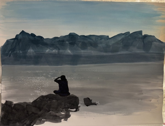 Acrylique et crayons aquarelle sur papier, 50 x 70 cm, 2024